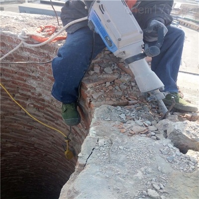 3、煙囪上部頂帽:用空壓機打成小塊,在用氧氣割掉鋼筋。